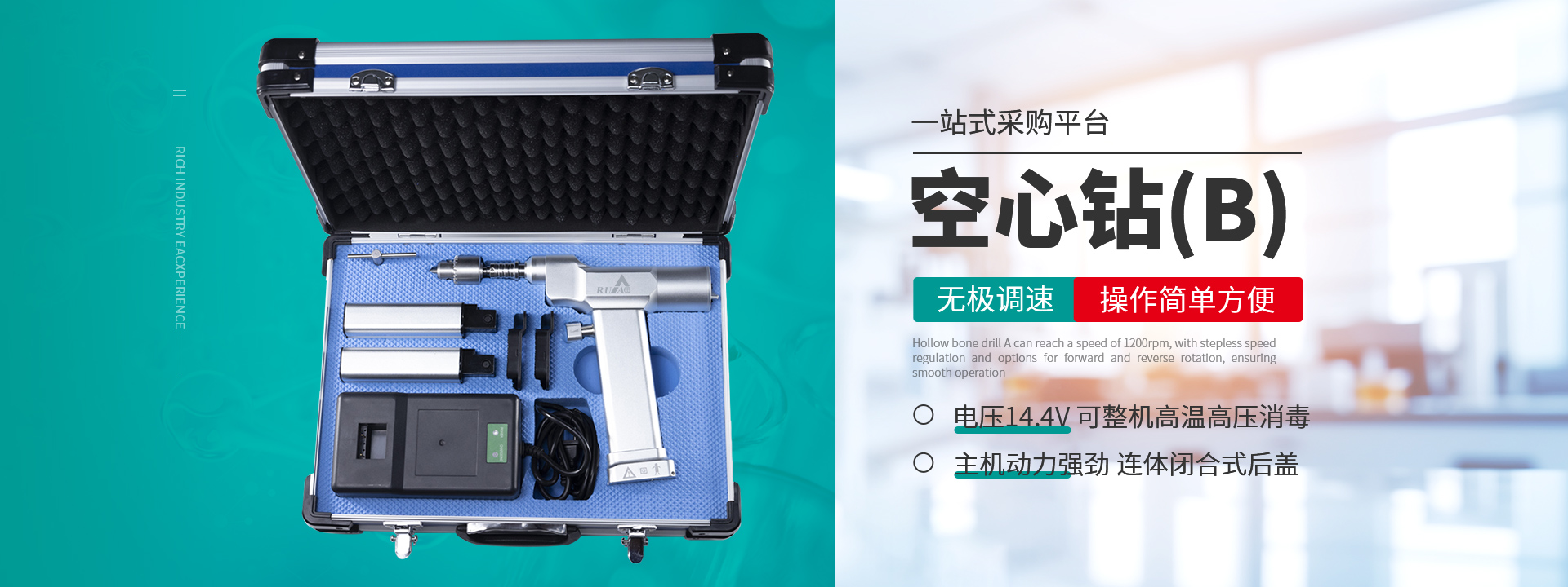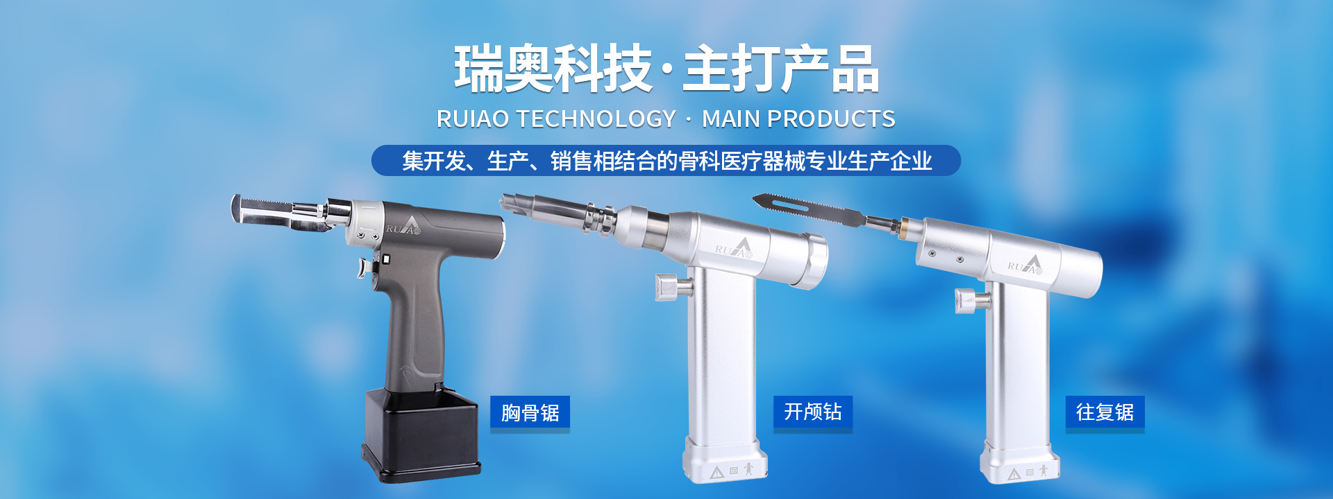 鹽城瑞奧科技有限公司主要產品:醫用電動鋸鉆系列(可高溫高壓消毒和熏蒸消毒兩種):包含骨鉆、擺鋸、胸骨鋸、空心骨鉆、開顱鉆、顱骨銑等等,適用于骨科、腦外科、神經外科、胸外科、手足及顯微外科、脊柱外科、整形外科等各種手術的要求。電動石膏鋸可切割高分子繃帶、石膏等?;A器械系列:咬骨鉗,髓核鉗,椎板咬骨鉗,持骨鉗,四肢骨折手術器械包等。